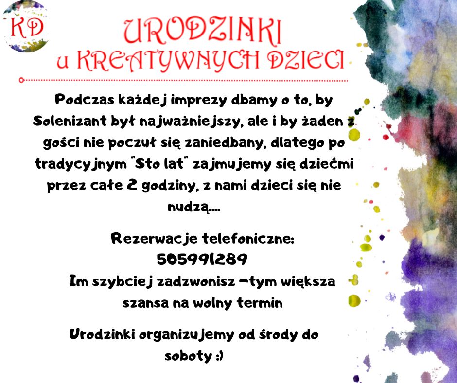 Zajęcia ogólnorozwojowe, kreatywne dla dzieci w wieku 2-5 lat z aktywnych udziałem Rodzica. Zajęcia typowo plastyczne, gdzie dziecko pod okiem i z pomocą Rodzica/Opiekuna stworzy swoje arcydzieło. Tematyka zajęć będzie ściśle wiązała się z okresem w jakim będą odbywać się zajęcia. Dzieci będą pracować różnymi technikami, zaproponowanymi przez Prowadzącą.