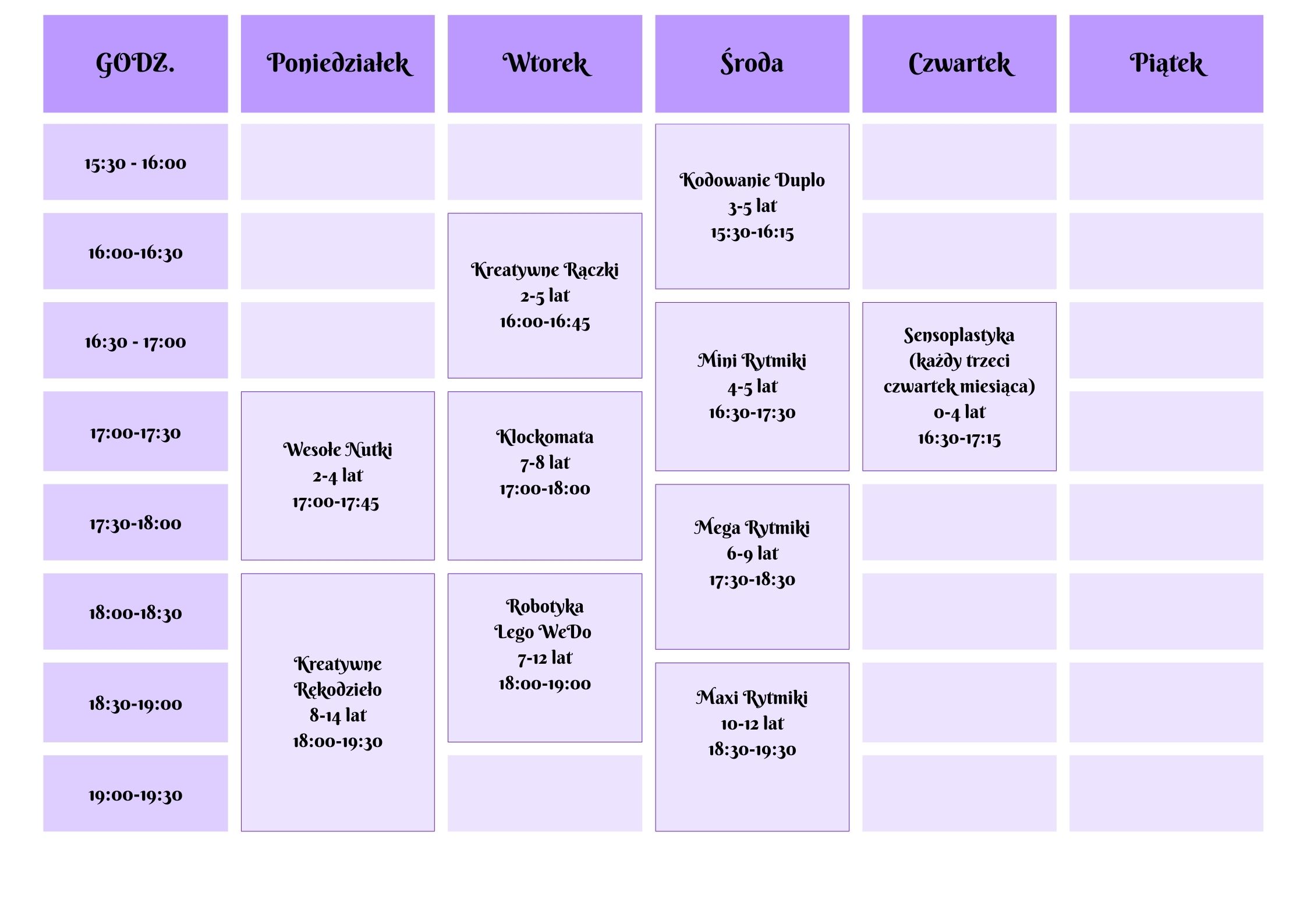 Zapisy na Kodowanie DUPLO, Robotykę Lego WeDo oraz zajęcia Klockomata odbywają się przez stronę: